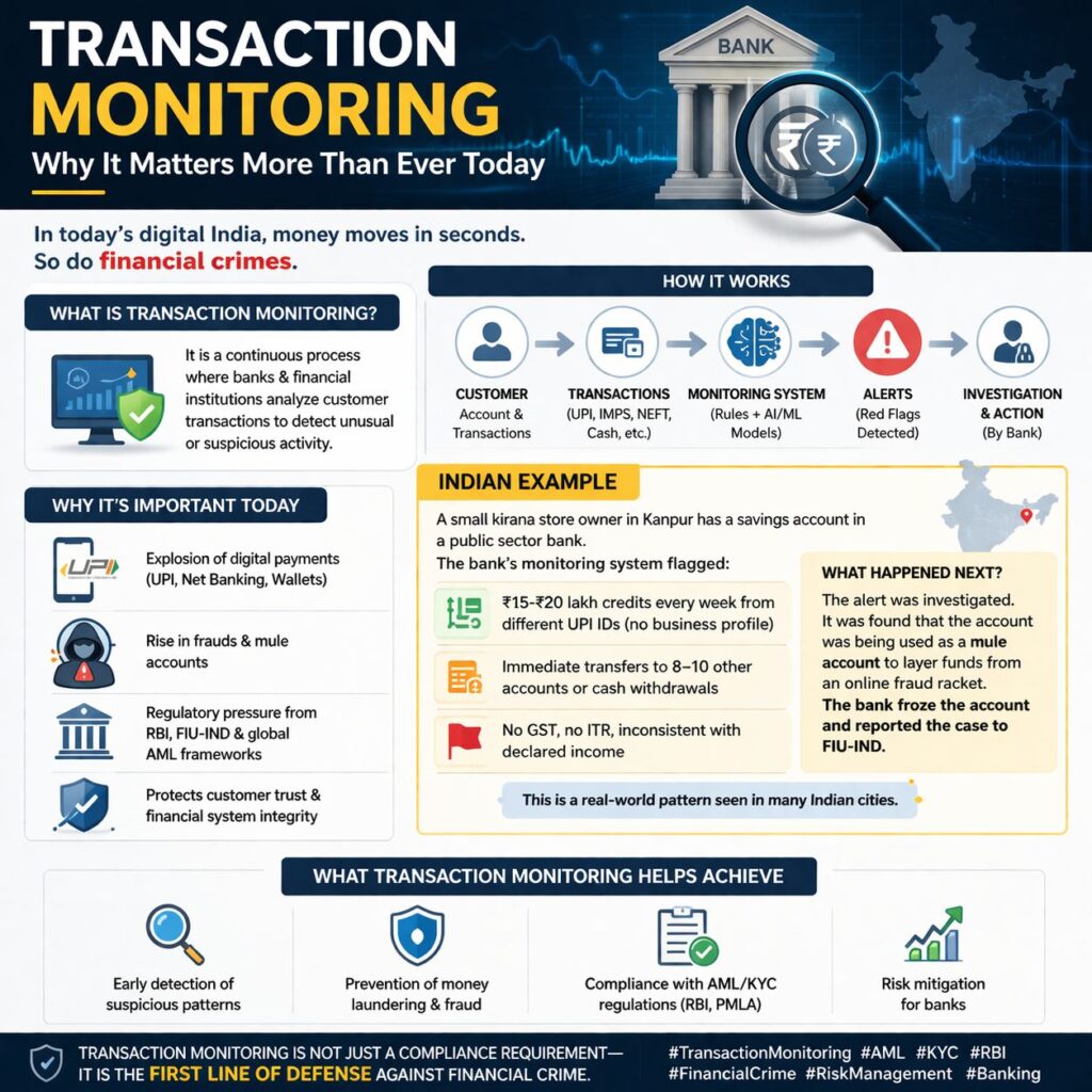 hashtag#TransactionMonitoring hashtag#AML hashtag#KYC hashtag#Banking hashtag#FraudPrevention hashtag#FinancialCrime hashtag#RBI hashtag#Compliance hashtag#RiskManagement hashtag#DigitalBanking